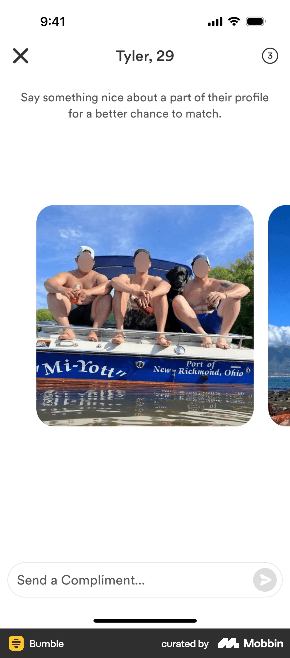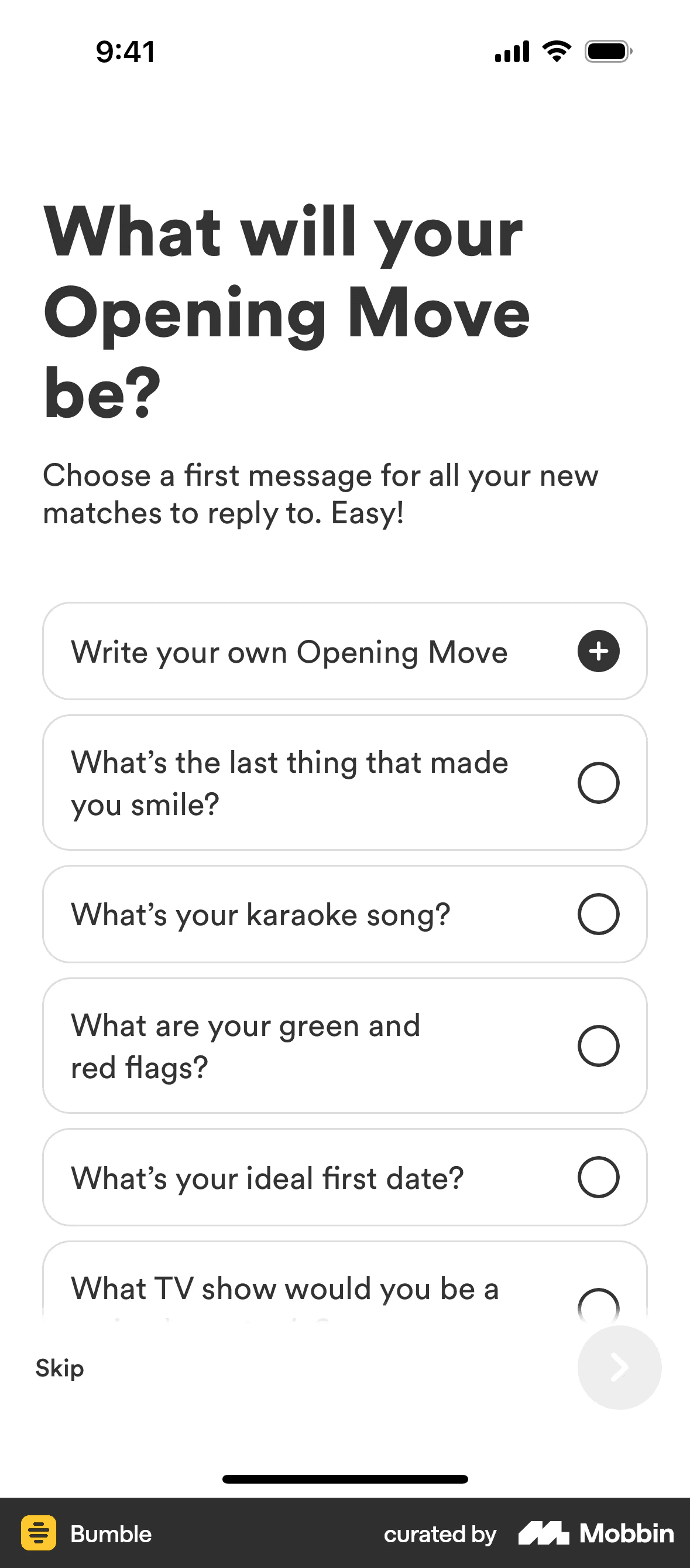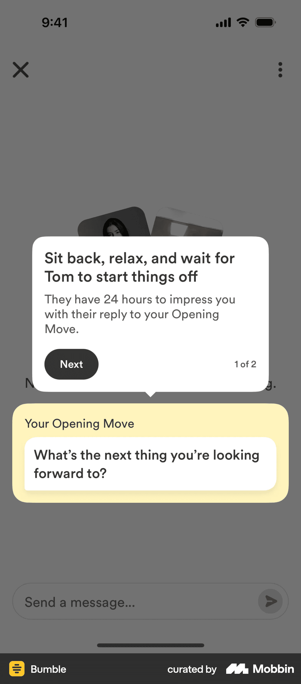 Bumble, in contrast, put more emphasis on authenticity and connection. Its onboarding began with asking for the user’s interests and even offers an ‘Opening Move’ feature to help jumpstart new connections. The app also had frequent identity verification to ensure users uploaded real photos of themselves, reinforcing trust, safety, and authenticity.