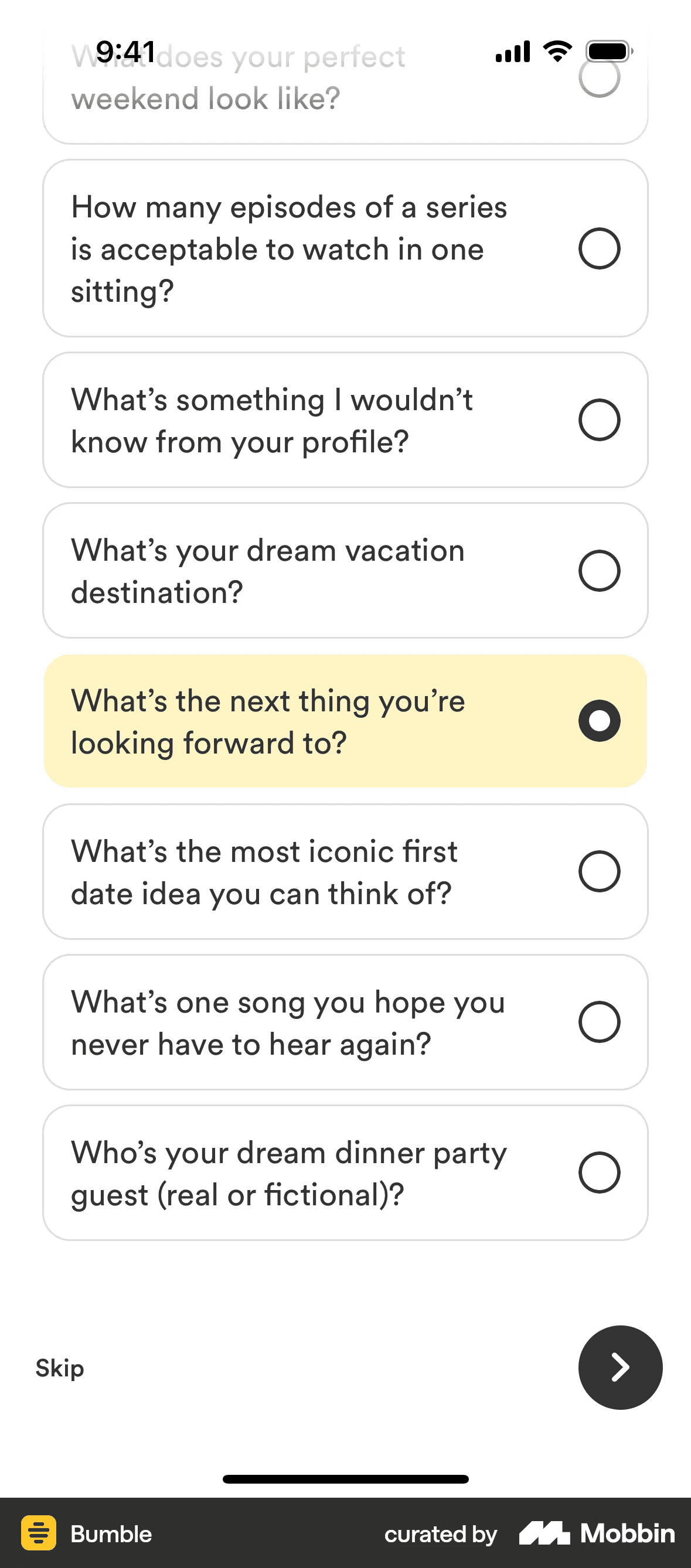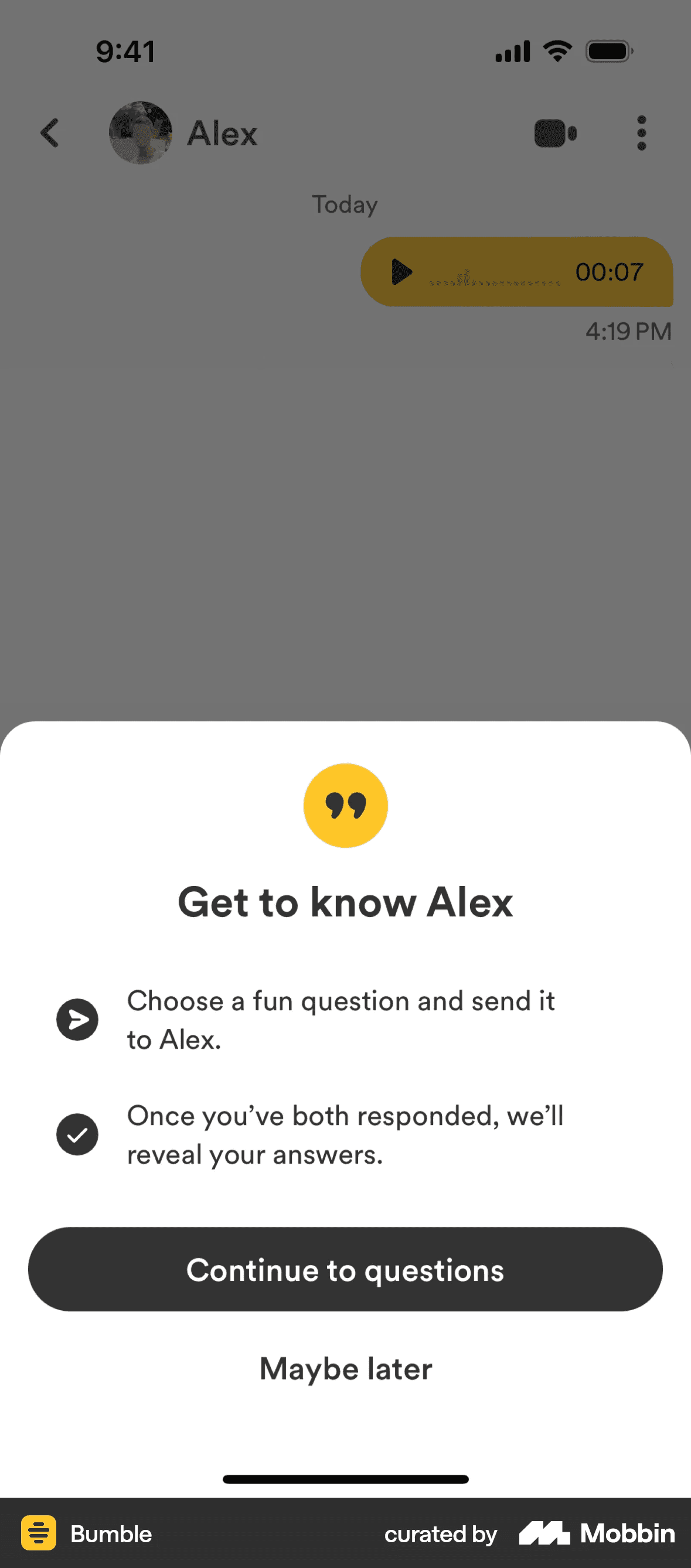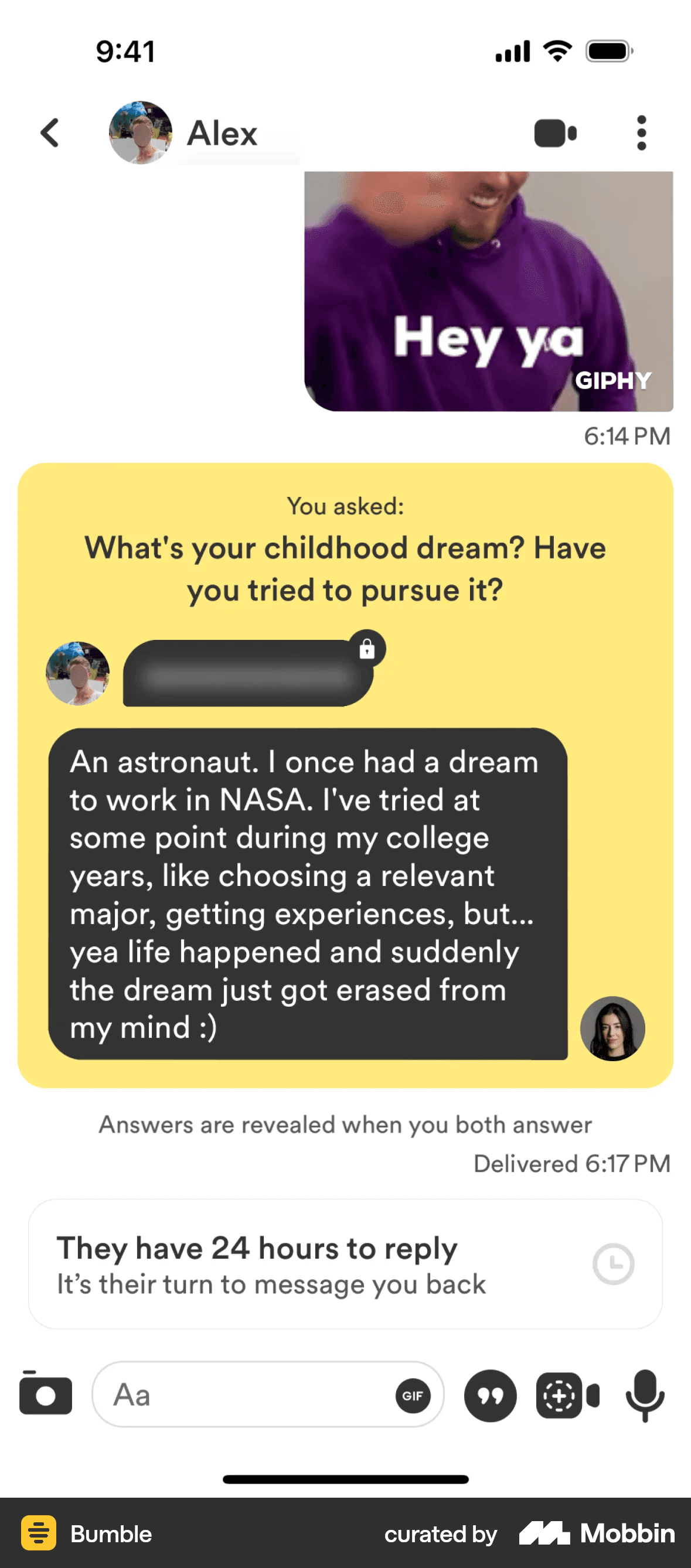 Bumble, in contrast, put more emphasis on authenticity and connection. Its onboarding began with asking for the user’s interests and even offers an ‘Opening Move’ feature to help jumpstart new connections. The app also had frequent identity verification to ensure users uploaded real photos of themselves, reinforcing trust, safety, and authenticity.
