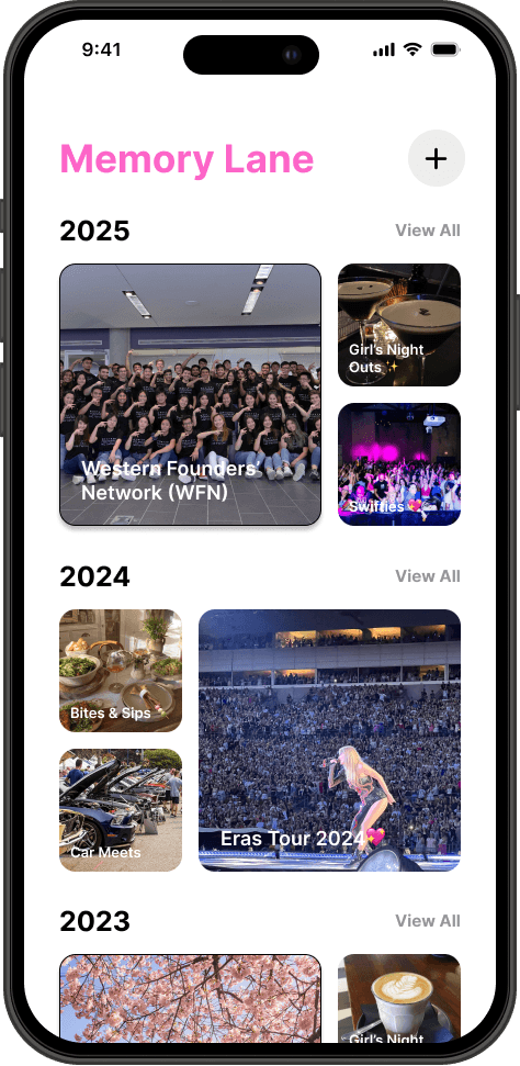 Memory Lane: A scrapbook-style page showcasing shared events and memories