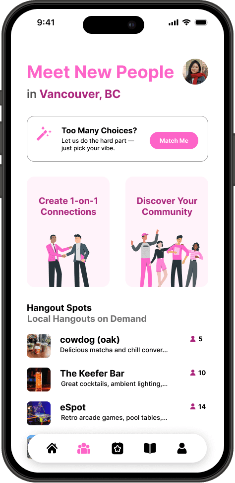 Users can also discover local hangout spots and see the number of people at each location. These spaces serve as ongoing, low-pressure invitations, perfect for those wanting to make new friends without the additional pressure or hassle of attending events and activities. As someone who once struggled to meet new people, I understand how valuable it is to have a place where you can simply show up, be yourself, and strike up a conversation without expectations, costs, or prerequisites.