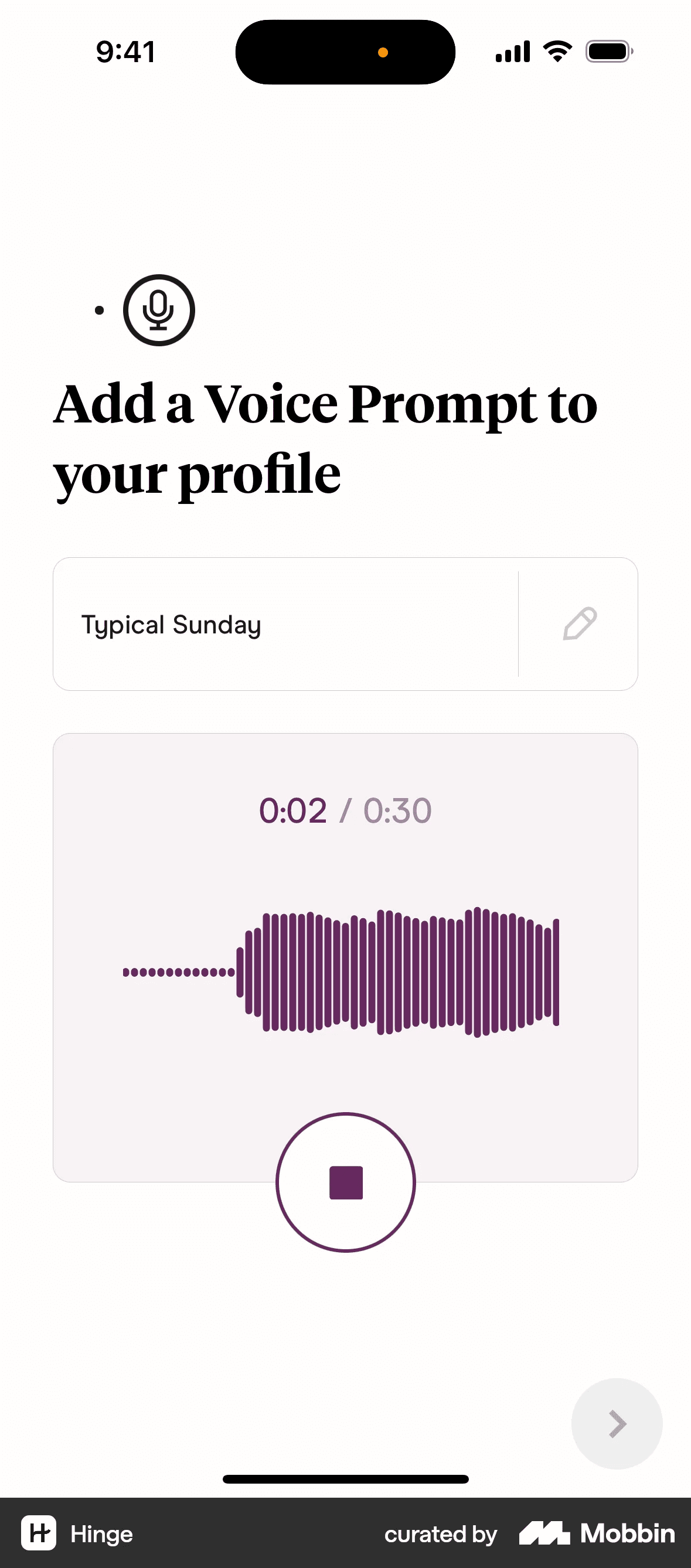 Subsequently, Hinge provides an extensive library of conversation prompts, like Bumble, but with an additional feature: voice prompts. These voice prompts enable users to showcase personality and humour in a more dynamic way that wasn’t restricted by the limitations of expression in text. In addition, the Standouts feature curates potential matches based on shared interests and preferences, allowing users to find compatible connections faster. For Weave, I adopted a similar interest-based filter, as the foundation of friendships is rooted in shared interests and passions. I also incorporated the voice prompts to aid users in showing the full depth and nuance of their character.