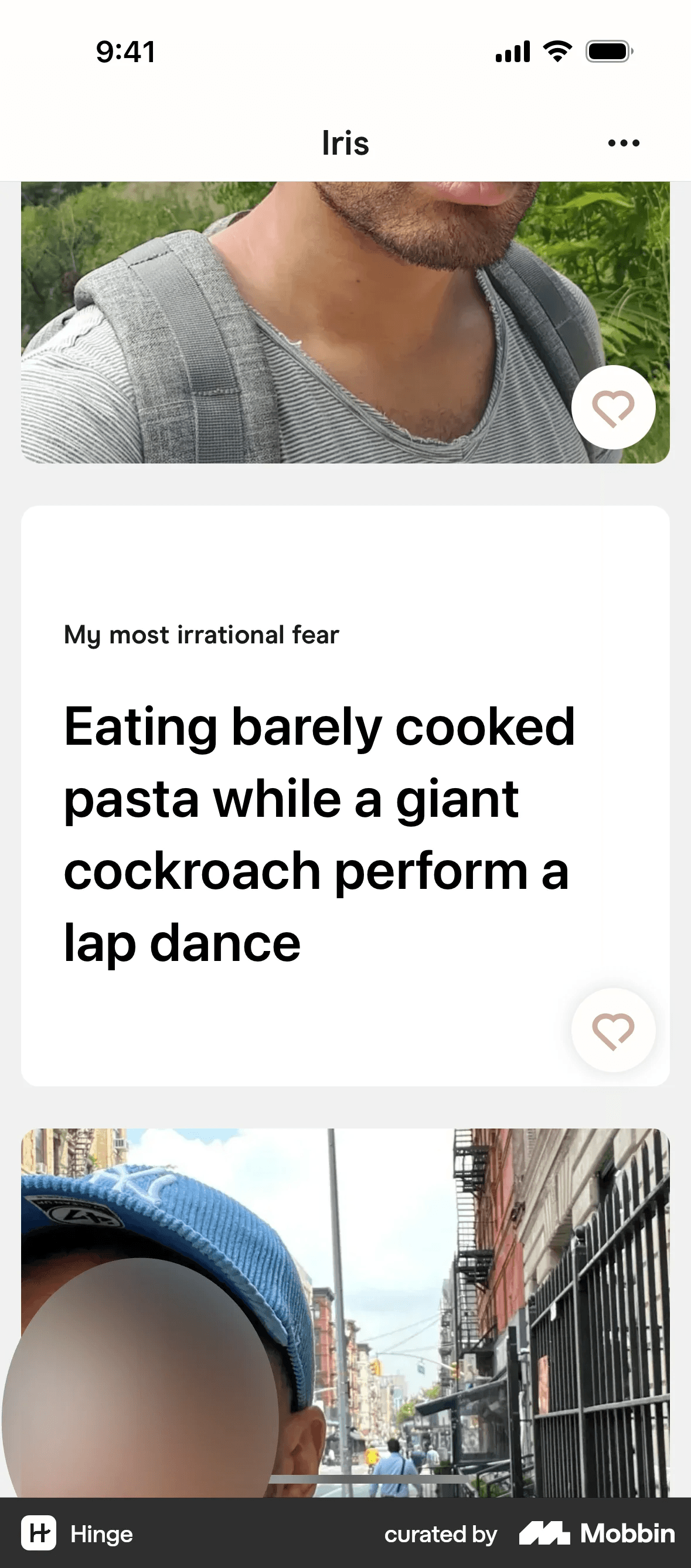 Much like Bumble, Hinge focused mainly on connection. However, it offers a more polished, aesthetically-refined approach. Many of the users uploaded photos reminiscent of an Instagram feed, well-photographed and curated, rather than the body-focused photos on Tinder. While the experience felt more upscale compared to Tinder, I didn’t want to encourage picture-perfect profiles, especially as that was one of my main criticisms with Instagram.