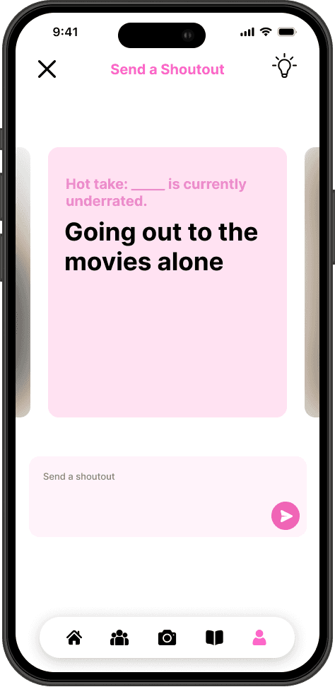 Unfortunately, this initial submitted prototype for the competition did not focus much on the friend-making aspect, but instead maintained focus on the friend-maintaining aspect, as indicated by the BeReal style feature and the memory lane. Overlooking such a major component of the challenge likely contributed to our lack of success in the competition. Still, this shortfall became a valuable catalyst — one that motivated me to revisit the concept and reimagine Weave as a sprint-winning prototype.