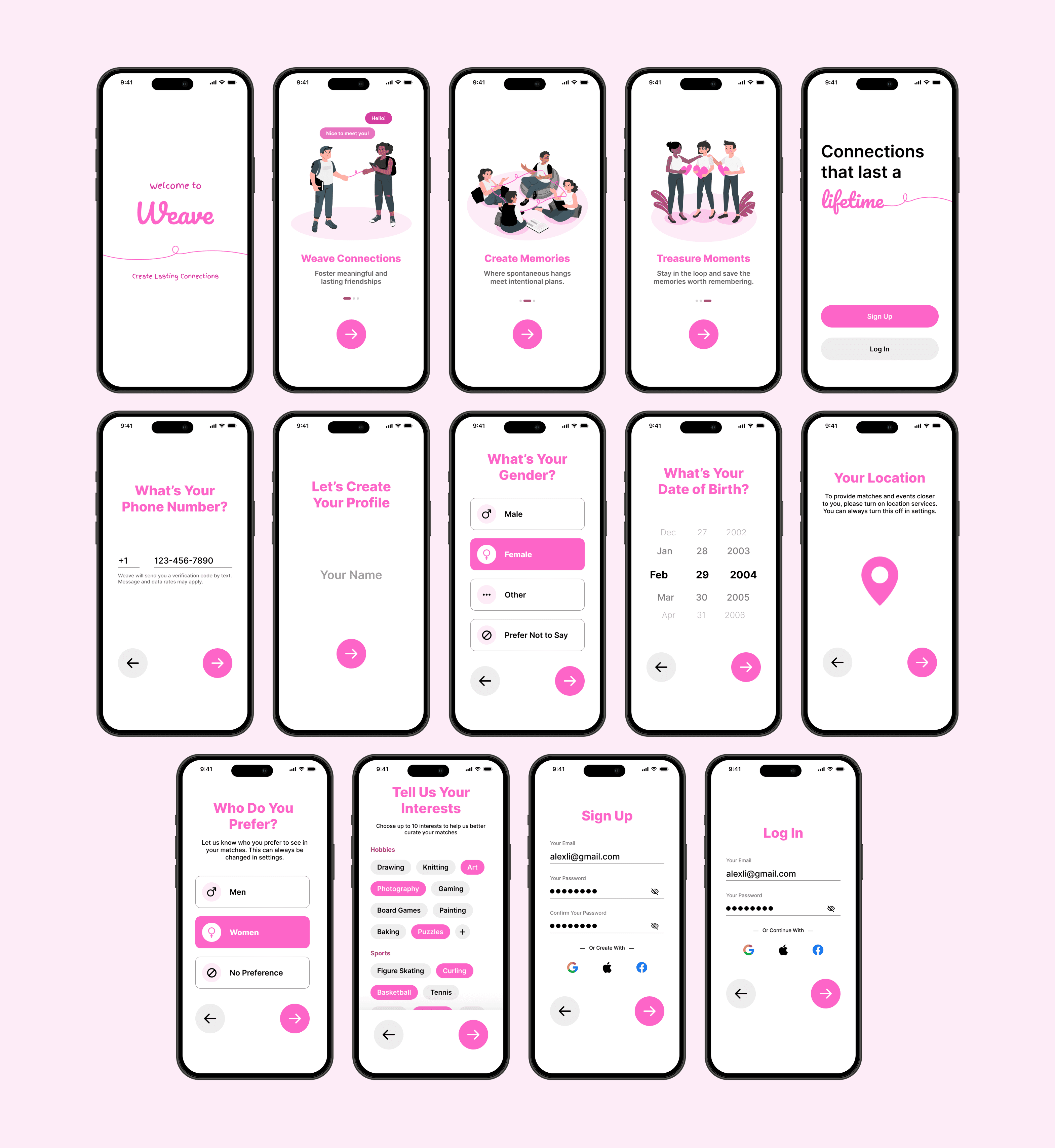 Analyzing all of these apps clarified what Weave needed to become: a platform that values intentionality, fosters genuine connection, and lowers social friction — without leaning on gamification or appearance-driven interactions. By merging the strongest elements from these existing platforms and ignoring their shortcomings, I began shaping Weave into a platform that supports both building and maintaining friendships in a thoughtful, user-centered way.