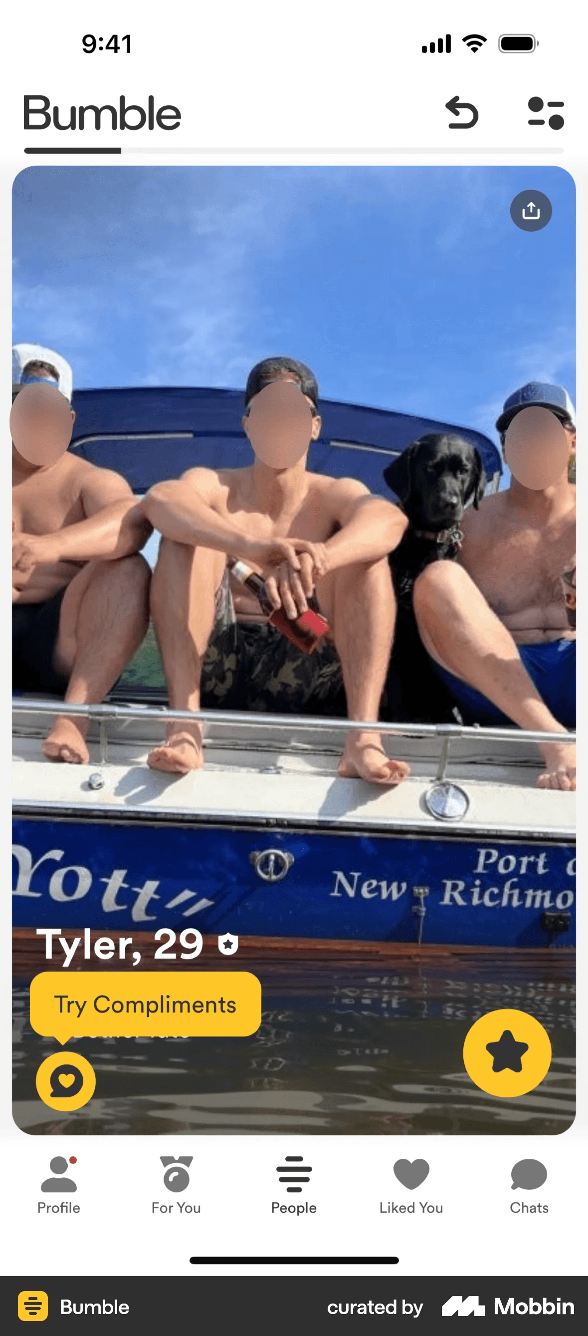 I also explored more friend-focused platforms like Yubo and Bumble for Friends to broaden my references. Surprisingly, Yubo seemed to heavily lean to fostering romantic relationships, despite being marketed towards friendship; its opposite-gender filtering and overtly flirtatious user culture created a hostile and uncomfortable environment for anyone seeking strictly platonic friendships. In contrast, Bumble for Friends seemingly offered a more genuine experience, with profiles from users — typically of the same gender — who appeared sincerely interested in forming friendships.